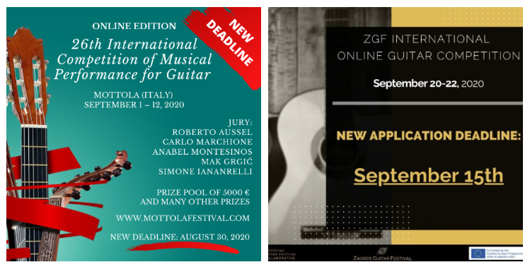 International Guitar Festival – City of Mottola has also extended an application deadline for its 26th International Guitar Competition of Musical Performance for Guitar – City of Mottola. The new deadline is August 30th, 2020.