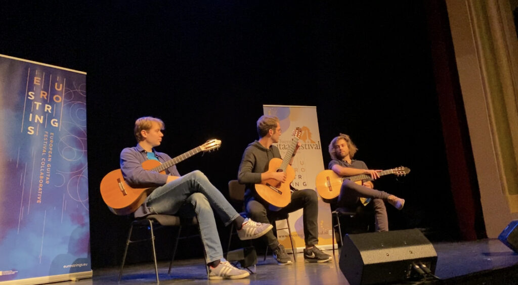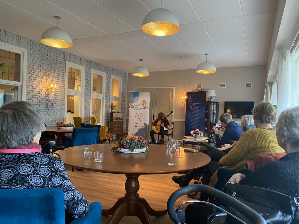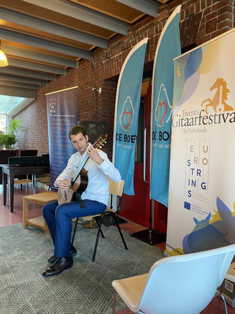 Three EuroStrings Artists that attended Twents Gitaar Festival this year, Ozberk Mirac Sarigul, Marcell Nickmann and Francisco Luis were also a part of the outreach activities organized there. Francisco played in Dementia Home Villa de Maere on Friday afternoon, while all of them played for kids & their parents and other interested audience at Concordia Theater in the festival’s yearly Discovery To The Guitar on Saturday afternoon. Later in the afternoon, Marcell Nickmann played solo in the community center De Boei, while Ozberk Mirac Sarigul played solo in the community center De Boei the next morning. The audience in the center De Boi were mostly people who usually don’t go to classical concerts, and now it was organized in their own community center. But also a part of this audience came especially for the concerts to the Twents Gitaar Festival and travelled far for this.