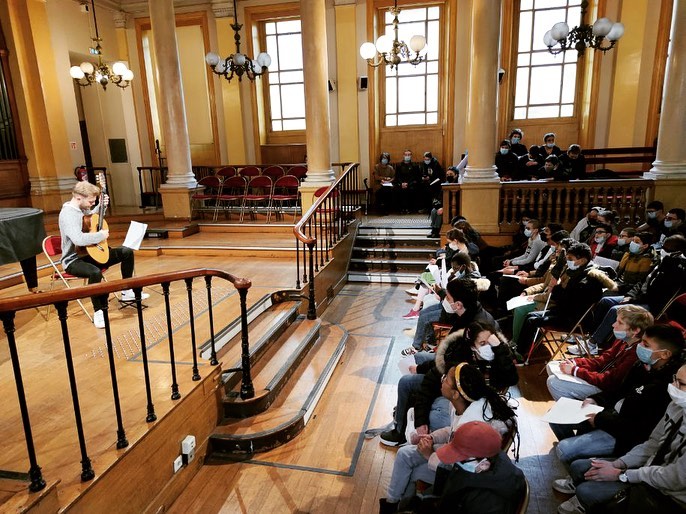 A couple of EuroStrings Artists had a pretty fun and memorable week at the Paris International Guitar Festival. The week started off with a beautiful concert that Bianka Szalaty, Jack Hancher, Marcell Nickmann and Ozberk Mirac Sarigul played at the Young Bling National Insitute (INJA). In 2019 EuroStrings Artists also played at the Institute, so it was great that this tradition was continued even in these pandemic times. There’s no doubt that the audience enjoyed their playing in person.
