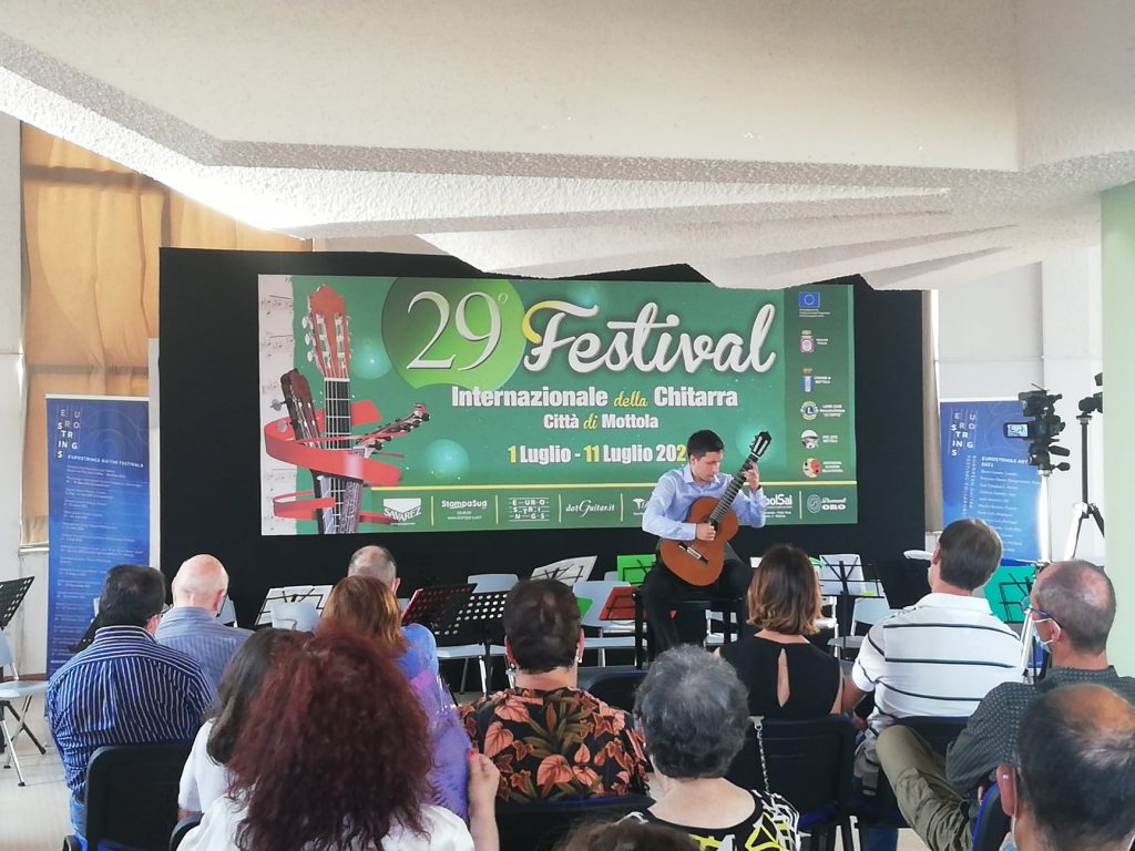 The cherry on top of the 29th International Guitar Festival Mottola was a concert under the name of “ChitarreInsieme”. It was a performance of the Youth Guitar Orchestra directed by Maestro Leonardo Lospalluti. Among 23 members of the orchestra, there was also our EuroStrings Artist Steve Cowan, and the winner of the EuroStrings scholarship for this festival, Sante Mileti. They have accompanied the performance of two soloists, another EuroStrings Artist Eleonora Perretta and Lovro Peretić, who is the ES Competition winner from last year.